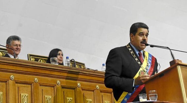 «Llamo a un diálogo constructivo para la construcción de una nueva economía, para desactivar cualquier mecanismo vinculado a la especulación de la moneda, de los precios, para que el capitalismo salvaje no se siga tragando a nuestra moneda», afirmó el presidente venezolano, Nicolás Maduro, en su intervención anual ante el Parlamento, de mayoría opositora.