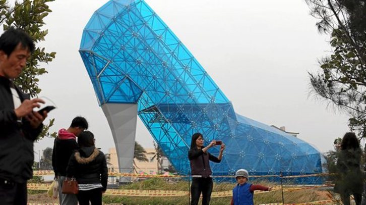 Badira eliza moderno askoak munduan, baita arras arraroak ere. Baina Taiwanen hego-mendebaldeko Chiayi hirian eraiki duten takoidun zapata itxurako honek ondo irabazia dauka elizarik moderno eta arraroenen zerrendako lehen postuetako bat. “Daily Mail” egunkariari eginiko adierazpenetan, «emakumea elizara gerturatzea» duela helburu azaldu dute eskualdeko arduradun publikoek. 17 metro garai eta 10 zabal ditu eliza urdin honek, eta 320 beira pieza baliatu dituzte eraikitzeko. Otsailaren 8an irekitzekotan dira.AFP PHOTO