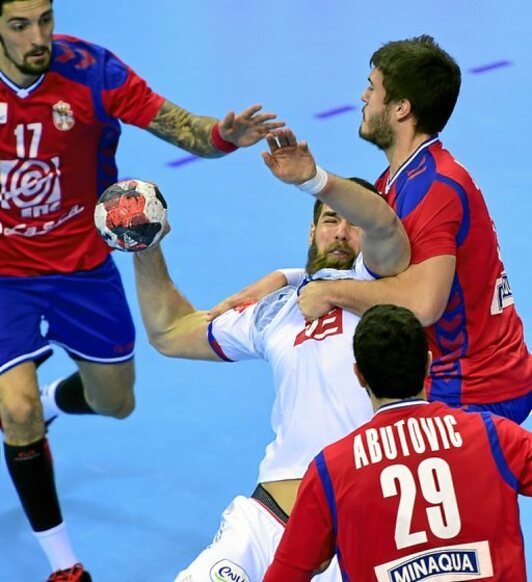 En el Grupo A, la vigente campeona Francia subió una marcha sus prestaciones para superar 36-26 a Serbia que, sin puntos todavía, se la jugará ante Macedonia, y asegurarse el pase a la siguiente fase. A pesar de sus bajas, los de Claude Onesta tomaron ventaja en el marcador desde el incio (5-2) y mantuvieron rentas de dos y tres goles durante toda la primera mitad, salvo el 12-12 tras la segunda exclusión de Luka Karabatic. Con un excelso Nyokas, con seis goles en seis intentos, los franceses se fueron al descanso con 19-16. En la reanudación, fue Nicola Karabatic el que amplió la renta para los galos, que tuvieron una tarde tranquila. El talento de Djukic no fue suficiente para el equipo serbio.