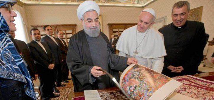 El papa instó ayer a Rohani a jugar «un papel importante» en Oriente Medio para «promover soluciones políticas adecuadas» que detengan «la propagación del terrorismo y el tráfico de armas» en la región. Fue la primera visita al Vaticano en 17 años de un mandatario iraní.