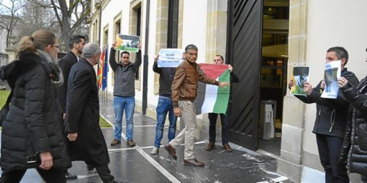 Como ya hiciera con la visita del cónsul de Marruecos, EH Bildu manifestó ayer su protesta por el recibimiento de la presidenta del Parlamento de Gasteiz al embajador de Israel. Euskal Herria Palestina Sarea se sumó a la denuncia y a la defensa de los derechos de los palestinos.Ibai TREBINO