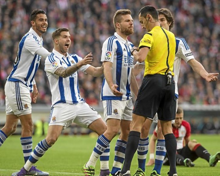 «Ganar es mejor que empatar y empatar es mejor que perder», decía ese ‘refranero de la pelota’ que era Vujadin Boskov. El Athletic, ayer, nunca estuvo en disposición de lo primero, ganar, y apenas sí le dieron las ideas para lo segundo, empatar. Porque enfrente tuvo a una buena Real, plantada, con la lección bien aprendida, de subidón, que fue superior hasta que se adelantó en el marcador para después nadar y guardar la ropa con solvencia, sin conceder apenas un solo disparo a puerta de los bilbainos entre los tres palos. Una Real a la que el Athletic nunca supo cómo hincar el diente, por dónde atacar, dónde detectar su debilidad, un querer y no saber preocupante. Y para rematar esa inoperancia, los bilbainos jugaron desquiciados por un señor de Murcia, trencilla del encuentro, al que, según se quejaría después Munian, en caliente, «le vino grande el partido».