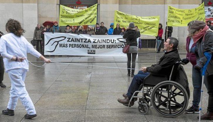 Por un lado, LAB pide el aumento de las plantillas en los centros y servicios para personas mayores, menores y con diversidad funcional, ya que la falta de personal está derivando en «una merma de la calidad del servicio». Actualmente, en una residencia pública de la CAV puede haber un profesional para cada tres usuarios, «cuando en muchos países europeos hay un trabajador por cada gran dependiente», apuntó Vázquez.