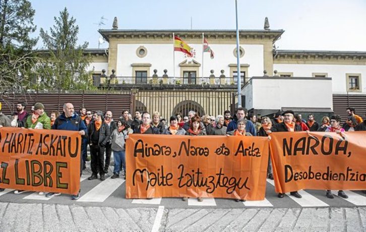 Martuteneko espetxeraino heldu zen atzo desobedientziaren kolorea hartu zuen martxa laranja, Ainara Ladron, Aritz Azkona eta Naroa Ariznabarretaren askatasuna eskatzeko. Hiru gazte horiek 2007an “Jarrai-Haika-Segi auzia” salatzeko A-8 autobidea mozteagatik auzipetutako bost gazteetako hiru dira. Epaiketara ez aurkezteagatik atxilotu eta kartzelatu zituzten martxoaren 3an.