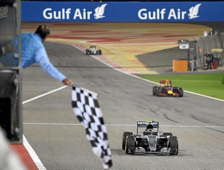 Nico Rosberg (Mercedes), que ya había vencido en Australia, aumentó su ventaja al frente del Mundial de Fórmula Uno al ganar en Bahréin el segundo Gran Premio del año. Además, el Ferrari de Kimi Raikkonen se entrometió en la guerra privada de los Mercedes, con lo que el alemán pudo meter algo más de tierra de por medio respecto a Lewis Hamilton, tercero ayer, que vuelve a ser su principal escollo hacia el Mundial.