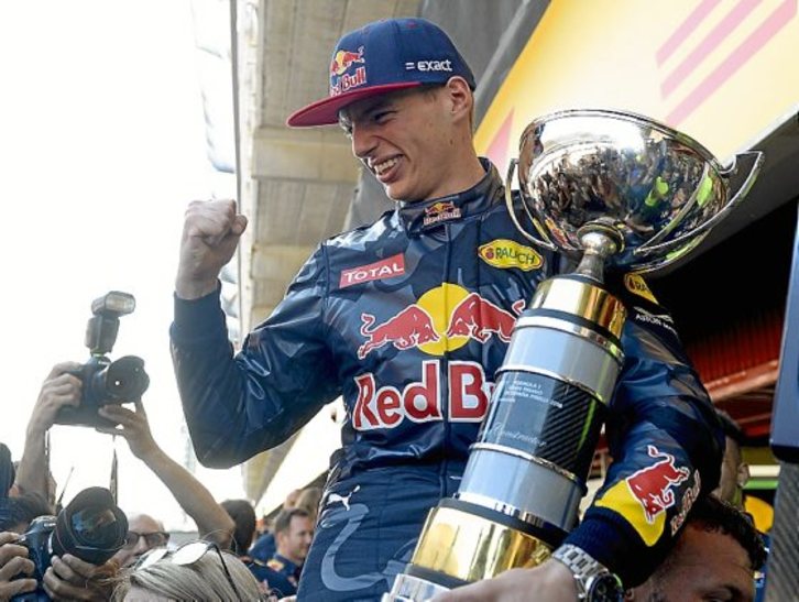 Con 18 años, 7 meses y 15 días, el holandés se convirtió en el ganador másjoven de la historia de F1. Los dos Mercedes, Rosberg y Hamilton, abandonaron.