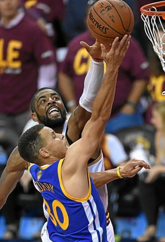LeBron James y Kyrie Irving fueron una vez más las principales armas de los Cavs. LeBron volvió a rozar el triple doble: 25 puntos, 13 rebotes y 9 asistencias –así como 7 de las 11 pérdidas de su equipo–, mientras que Irving vivió un mano a mano maravilloso con Curry: 34 puntos, 4 rebotes, 3 robos y un taponazo al propio Curry en una primera mitad en el que los campeones del Este llegaron con una pequeña renta: 55-50.