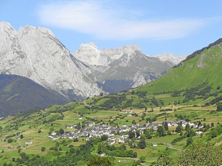 Lescún, como el resto de los pueblos asentados en el valle de Aspe se encuentra en un núcleo apretado de caseríos con picudos tejados de pizarra. Integrado en un paisaje de eterno verde, rodeado de montañas donde imperan el bosque y los pastos de altura, coronados por un sinuoso perfil de picachos y murallas de roca calcárea. En esta ocasión la propuesta es alcanzar el pico de Labigouer, de 2.175 metros, situado entre el valle de Aspe y la parte sur del circo. Esta altura se hermana con la divisoria axial de la cordillera, en el Pico Rojo, dominante sobre el valle de Aguas Tuertas de Oza-Echo.