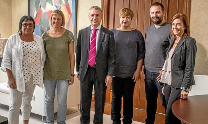 Representantes de la organización de Kilometroak 2016 acudieron ayer a Lehendakaritza, donde fueron recibidos por el lehendakari en funciones Iñigo Urkullu y la consejera de Educación, Cristina Uriarte. La fiesta de las ikastolas de Gipuzkoa celebra este domingo, en Bergara, su 40 edición, con el lema “Demasa”.