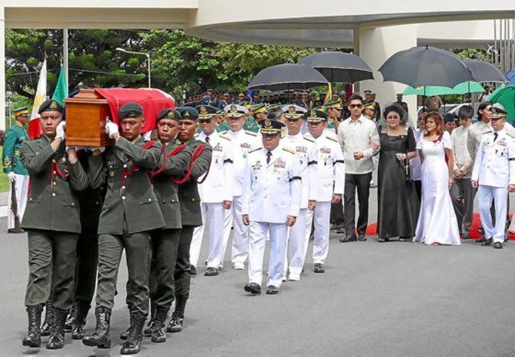 «Hoy –por ayer– se cumplió el deseo final de mi padre: ser enterrado con sus soldados compatriotas», dijo ante los medios la primogénita del dictador, Imee, minutos después de las exequias en el camposanto, protegido por unos 2.000 efectivos de la Policía y el Ejército para evitar incidentes.