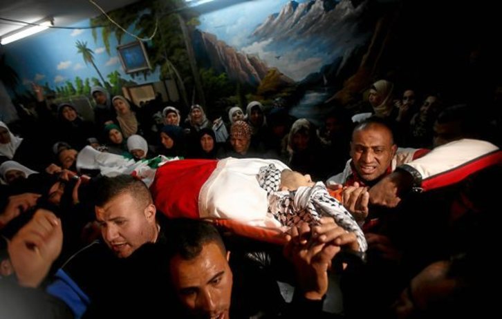 Soldados israelíes mataron en la noche del lunes al palestino Mohamed al-Salhi, al que acusaron de haber intentado atacarlos con un cuchillo en el campo de refugiados de Al-Fara. Sin embargo, Al-Salhi intentaba impedir que los uniformados entraran en su vivienda durante una noche de redadas masivas en la que el Ejército detuvo a 33 personas, entre ellas seis menores. El Centro Palestino de Derechos Humanos acusó al Ejército israelí de haberlo ejecutado disparando a bocajarro.GARA