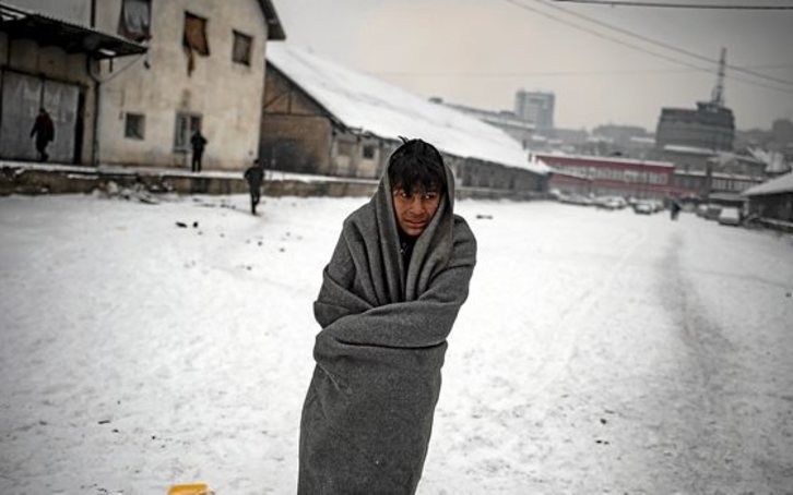 Sin calefacción, electricidad, agua caliente ni ropa de abrigo adecuada y viviendo en un viejo almacén detrás de la estación de trenes afrontan cientos de inmigrantes –la mayoría de Pakistán y Afganistán– el helado invierno en Belgrado con temperaturas de hasta 15 grados bajo cero que intenta combatir prendiendo pequeñas fogatas. El edificio, en que hay desperdicios y lodo por todas partes, está lleno del humo que daña los ojos y dificulta la respiración. Sin embargo, recelan de acudir a un centro de solicitantes de asilo por temor a ser deportados.
