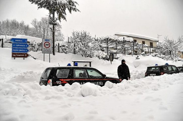 Unas nevadas que han aislados y dejado sin comunicación y electricidad pueblos enteros y que no pararán al menos hasta mañana, según los pronósticos. Se ha alertado de las bajas temperaturas en esta área próxima a los Apeninos: en torno a los -6 grados en Amatrice, sobre los -11 grados en Accumoli y alrededor de 0 grados en L'Aquila. La nieve ha alcanzado los dos metros en Amatrice y muchas localidades de los Abruzos están totalmente aisladas, por lo que se desconocía el alcance de los daños.
