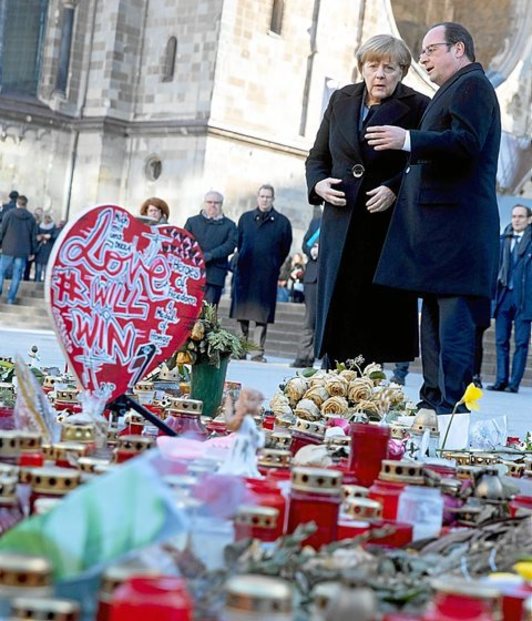 La canciller alemana, Angela Merkel, y el presidente francés, François Hollande, subrayaron la necesidad de preservar la unidad europea ante amenazas internas y externas, incluyendo el aumento del extremismo en Europa y la orientación proteccionista de EEUU.