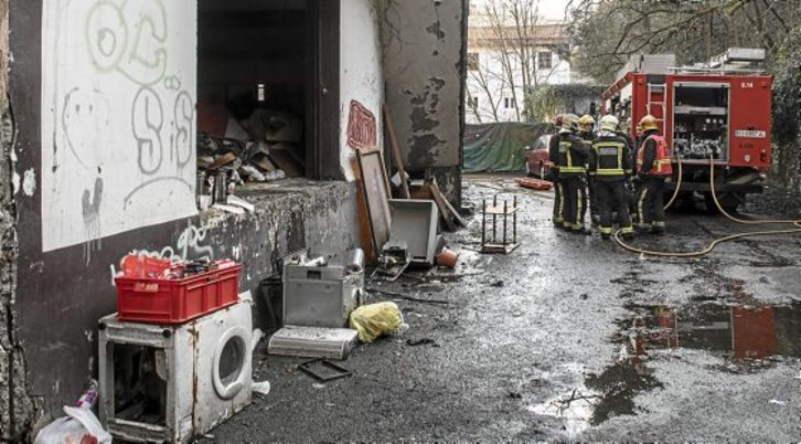 El incendio tuvo lugar sobre las 05.20 del pasado jueves, cuando los servicios de emergencia recibieron una llamada que alertaba del fuego en una nave en desuso situada en la avenida Ama Kandida de Andoain.