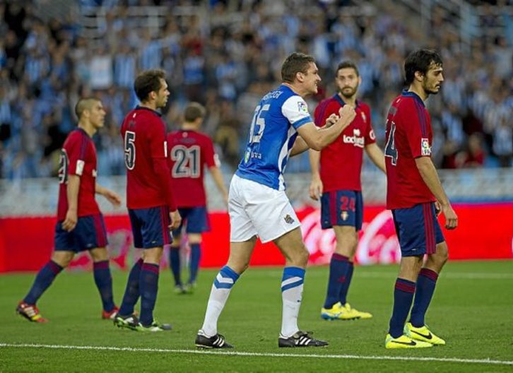 El último referente en Primera División fue en la temporada 2014/15 y terminó con un contundente 5-0, que supone la mayor goleada que la Real le mete a Osasuna en la historia. Los autores de las dianas fueron Ansotegi, Iñigo Martínez, Griezmann, Chory Castro y Seferovic. Sin embargo, este dato puede resultar engañoso porque en las dos campañas anteriores los partidos se saldaron con sendos empates a cero. La última ocasión en que ganaron los rojillos fue en la campaña 2005/06 con resultado de 1-2.