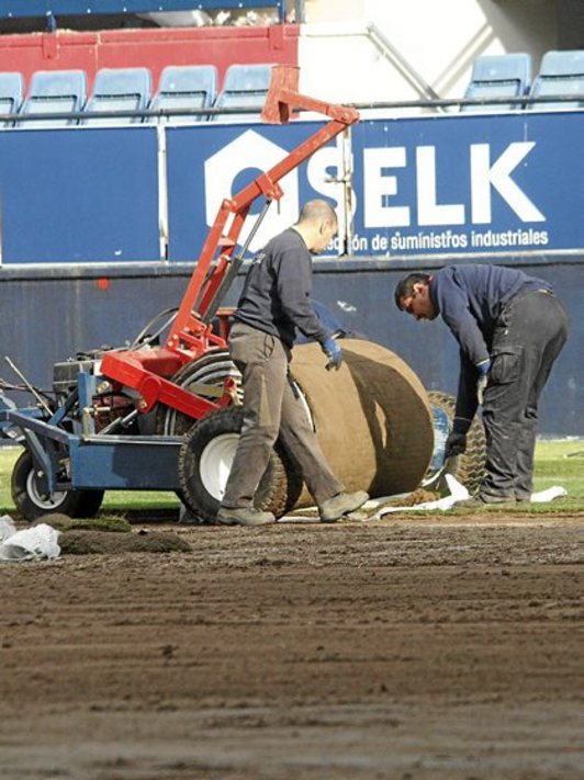 Si la lluvia no lo impide, está previsto que mañana concluyan los trabajos de colocación del nuevo césped de El Sadar, un manto verde natural de 7.600 metros cuadrados que será estrenado coincidiendo con la visita del Real Madrid.N.M.
