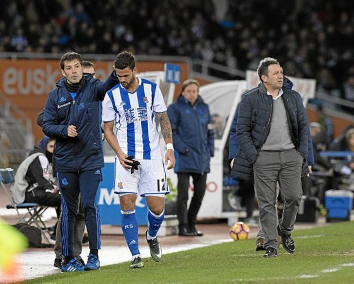 David Zurutuza sintió molestias en el entrenamiento a puerta cerrada ayer y hoy se verá en la última sesión si no le impiden jugar mañana un partido en el que será baja Iñigo Martínez por sanción.