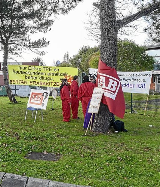 Antes de que se conociesen los datos de las votaciones, LAB realizó una acción de protesta ante la sede de Direccte (Dirección Regional de Empresas, Competencia, Consumo, Trabajo y Empleo) para reclamar el «derecho a conocer los resultados de Ipar Euskal Herria».