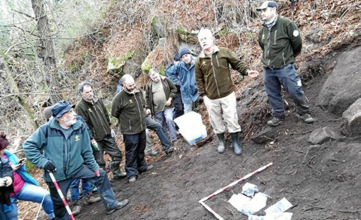 Representantes del Ayuntamiento de Larrabetzu y del Ejecutivo de Lakua participaron ayer en la exhumación de los restos de un combatiente hallados en el monte Urkullu.