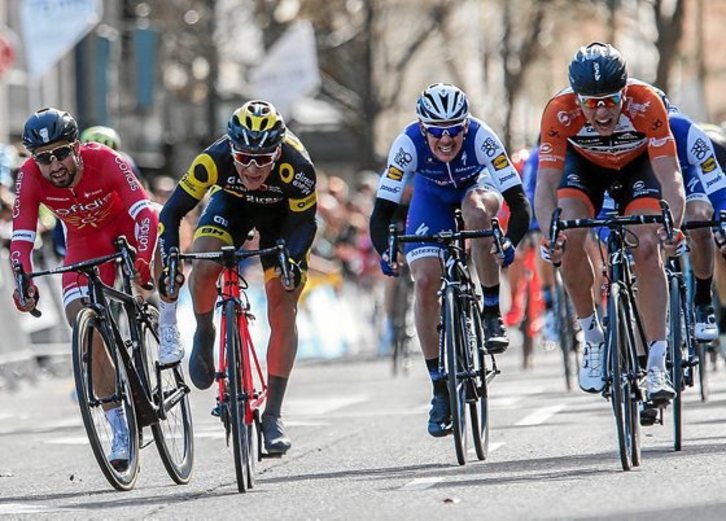 También subió al podio, claro, Bryan Coquard, vencedor de una última etapa que se resolvió al sprint pero que antes tuvo bastante movimiento, pese a que el terreno no daba demasiado de sí. Van Marcke y Keisse probaron primero, aunque el ciclista de Quick Step acabó marchándose en solitario para alcanzar una renta que rondó los 40 segundos a menos de treinta kilómetros de meta. Pese a la reacción del pelotón, Kwiatowski aceleró para unirse a Keisse en cabeza, lo que volvió a crear dudas entre los equipos con sprinters. Tantas, que no pudieron cazar a los dos fugados hasta la curva previa a la línea de meta. Allí se produjo un sprint larguísimo que acabó adjudicándose Coquard (Direct Energie), por delante de Nacer Bouhanni y Coen Vermeltfoort.