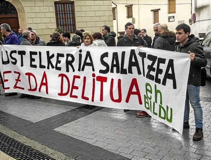 Coincidiendo con la declaración, integrantes de EH Bildu se concentraron ante los Juzgados de Agoitz para denunciar que se persigue a quienes denuncian la corrupción. También acudieron cargos de Geroa Bai.