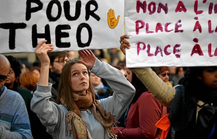 Theo izeneko gaztea agenteen indarkeriaren eta horien inpunitatearen ikur bihurtuta dago Estatuan. Bera atxilotu ondoren, eraso egin zioten zaindu behar zutenek: borra ipurdian sartu eta zauri larriak eragin zizkion ustez polizia batek. Gaztea afrikar jatorrikoa da. Atxiloketa Aulnay-sous-Bois herrian egin zuten, otsailaren 2an. Theo joan den ostegunean irten zen erietxetik. Ospitalean egon zen bitartean François Hollande presidentearen bisita izan zuen.
