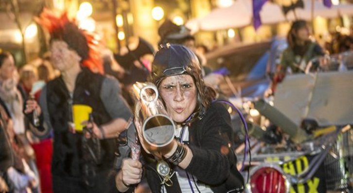 Sábado Regular intenso donde, desde el mediodía con un brindis con Agua de Bilbao, los disfraces ocuparon el centro mientras comenzaban las actividades programadas con degustación de sopa de ajo y karolinas incluida. A la tarde, el desfile congregó a más de medio centenar de grupos, desde la tropa soviética de la Peña Pa...ya a los FraggleRock de Aixe Berri pasando por ‘‘Greace’’ de Uribarri y el «Circo de la Transición española» de Hontzak.