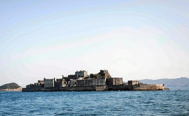 La lúgubre silueta de la isla minera de Hashima se perfila en el mar. Las fachadas sin ventanas y las estructuras metálicas oxidadas son los restos de la intensa industrialización que vivió Japón entre mediados del siglo XIX y principios del siglo XX. La isla, desértica desde el cierre de la mina en 1974, pasó en 2015 a formar parte del Patrimonio Mundial de la Humanidad de la Unesco.
