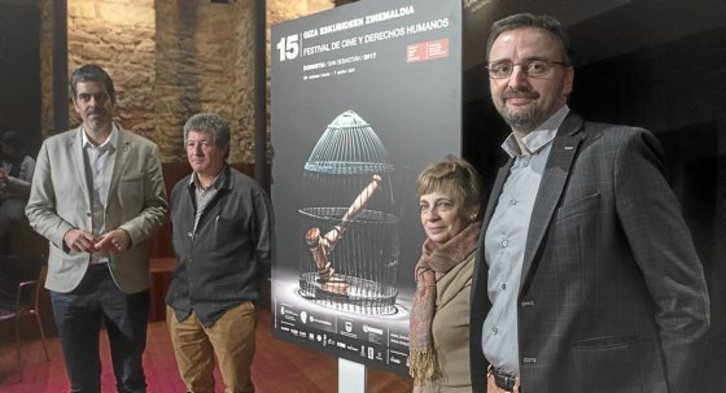 En la presentación participaron el responsable de la programación cinematográfica del certamen Josemi Beltrán, el representante de Amnistía Internacional Euskadi Iñaki Hernando, el alcalde Eneko Goia y la concejal de Cultura Miren Azkarate. En el acto recordaron a las víctimas del ataque registrado el pasado martes en Londres.