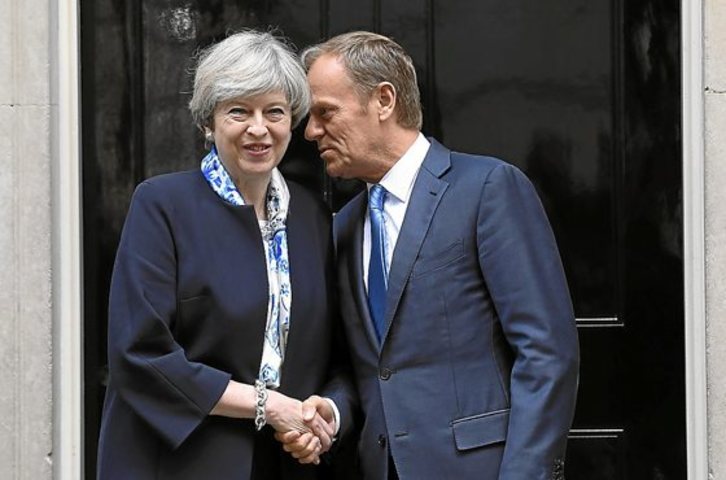 Según un portavoz de Downing Street, May agradeció a Tusk ayer el «enfoque constructivo» del borrador con las directrices para el futuro diálogo.