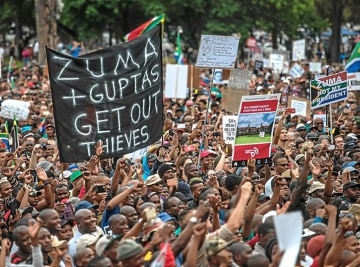 La situación política en Sudáfrica no deja de enrarecerse, el ambiente sigue caldeándose y la tensión aumenta por momentos. Miles de personas salieron el pasado jueves a las calles de las principales ciudades del país exigiendo la dimisión del presidente, Jacob Zuma, al que acusan de tomar decisiones en beneficio de un reducido círculo de amistades y lealtades, algo que estaría dañando seriamente la economía.