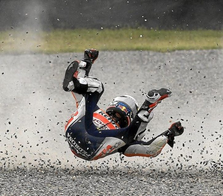 El primero en decir adiós a sus opciones fue Jorge Lorenzo, que se iba fuera en la salida, cuando intentaba adelantar posiciones tras salir muy retrasado, desde la 16ª posición.