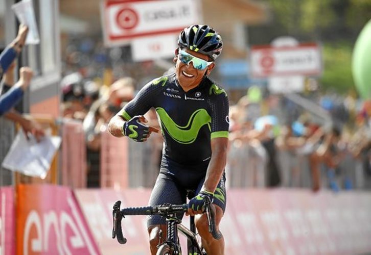 El colombiano afincado en Euskal Herria Nairo Quintana (Movistar) se impuso en el Blockhaus, en cuya cima dio un doble golpe tras un vuelo en solitario que le permitió enfundarse la maglia rosa de líder del Giro.
