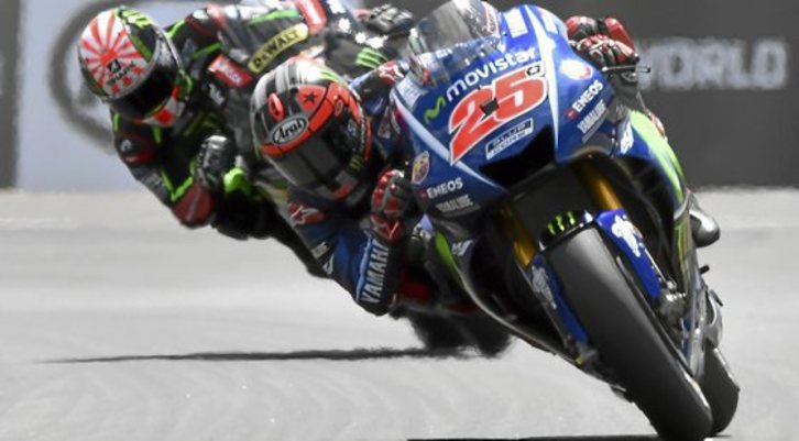 Maverick Viñales (Yamaha YZR M 1) se adjudicó su tercera victoria de la temporada en el Gran Premio de Francia de MotoGP que se disputó ayer en el circuito de Le Mans, en un apretado final con su compañero de equipo, el italiano Valentino Rossi, que acabó por los suelos a pocas curvas de la línea de llegada. En el toma y daca final, todo apuntaba a que sería complicado que Viñales superase a Rossi, pero el italiano cometió un error que le hizo colarse en una curva y el catalán no dudó en adelantarle, aunque Valentino se puso otra vez tras su estela para intentar ganar su primer gran premio de la temporada, pero sólo tenía la variante de entrada a meta para intentarlo y llegando a la misma fue donde llegó su segundo error y acabó por los suelos. Desolado por la caída, Rossi tuvo que regresar caminando a su taller y ver cómo ganaba su compañero de equipo.