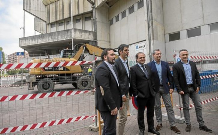 Todo aquel que ayer paseó por los aledaños de Anoeta pudo ver los alrededores del estadio con excavadoras y grúas. «Esta vez, después de no sé cuántas demoras, se ha hecho realidad el comienzo de las obras del estadio de Anoeta», desveló al respecto Jon Redondo, director de Juventud y Deportes de Lakua, mientras que para Jokin Aperribay, presidente de la Real, se trata de «un sueño cumplido». Lo hicieron durante la comparecencia que ofrecieron los responsables del Ayuntamiento, Diputación, Lakua y Real para dar por iniciada la reforma del estadio.