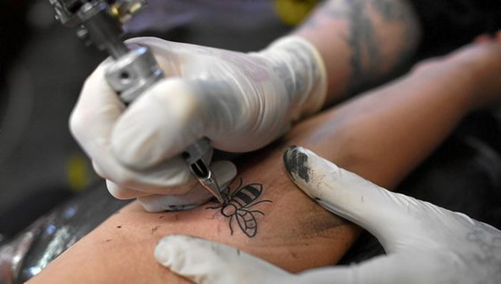 ¿Por qué, desde la semana pasada, todo el mundo que quiere tatuarse en Manchester está optando por hacerse una abeja? No hay apenas otras solicitudes en los abarrotados salones de tatuaje. «Bussy bee», o la abeja obrera, es el símbolo de la ciudad inglesa, represantación de su patrimonio industrial; y ahora también se ha convertido en icono de la «unión y resistencia» de sus habitantes tras el atentado del Manchester Arena del día 22.Ben STANSALL | AFP PHOTO