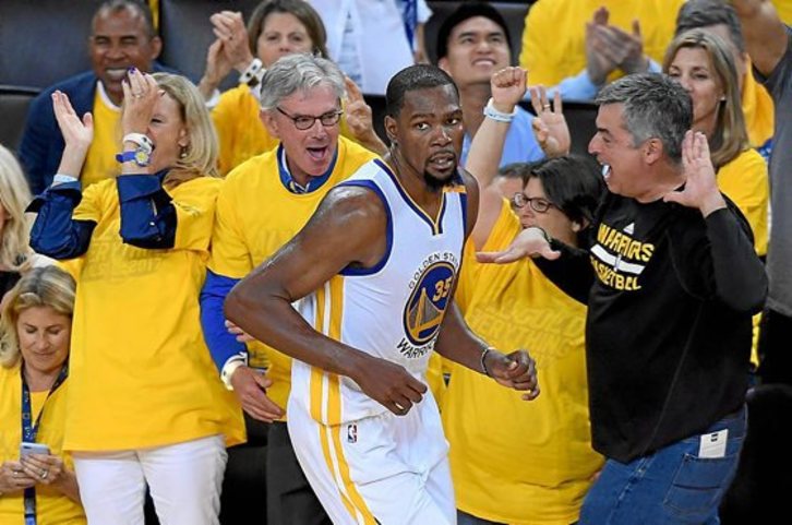Ya van 13 victorias seguidas para los Golden State Warriors desde que empezaron los play offs, después de pasar por encima de los Cleveland Cavaliers por 113-91 en el primer partido de la Final de la NBA. Kevin Durant, que afrontaba su primer partido en unas Finales desde que cayera por 4-1 con Oklahoma City Thunder ante Miami Heat en 2012, fue el elemento diferencial de los de Oakland, con 38 tantos, 8 rebotes y 8 asistencias.
