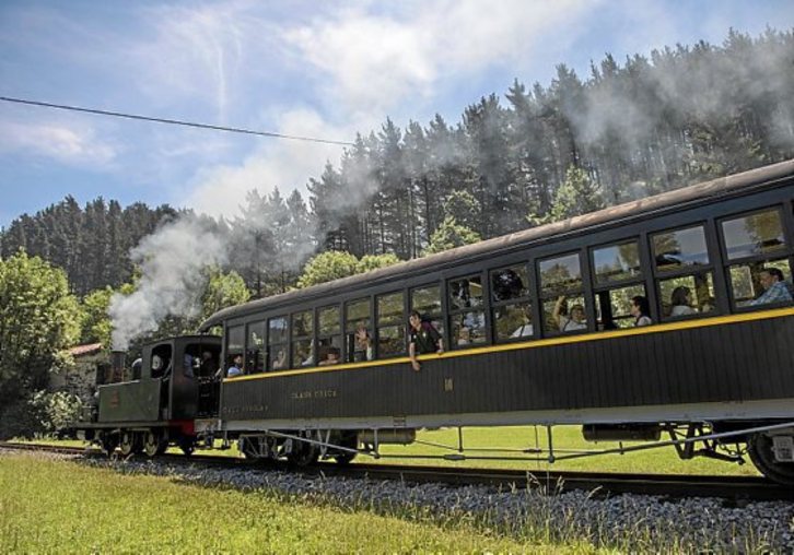 Pero, sin duda, lo más destacable fueron los dos viajes que realizaron en sendas máquinas clásicas: primero, en un chárter de vapor (la histórica locomotora “Zugastieta, de 1888); y después, tras almorzar, en uno diésel (Alsthom 1004 VA).