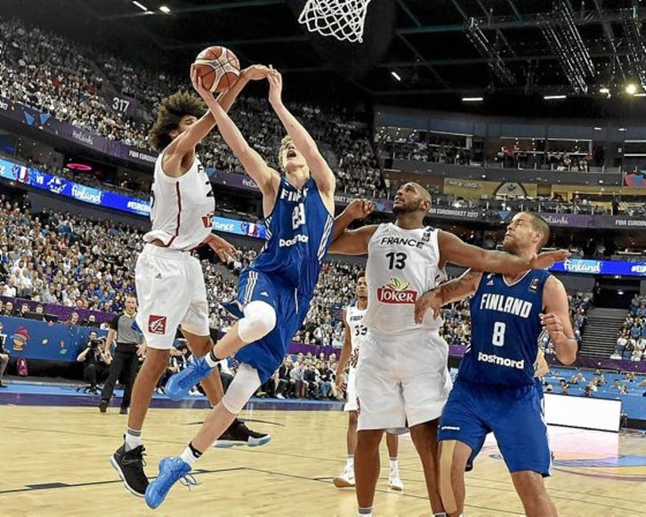 Pero vayamos al mismo grupo A, en Helsinki, al partido en el que los Susijengi, es decir, «los lobos», como se conoce a la selección suomi, tumbaron a una Francia sin Parker, Gobert, Batum o la sensación Ntilikina –nuevo base de los Knicks y auténtico fenómeno de 18 años–, pero con De Colo, Heurtel, Diaw o Lauvergne. O el baskonista Poirier, que jugó 6 minutos y se quedó sin anotar.