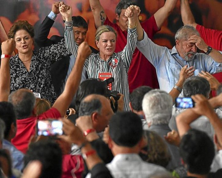 En ese mismo acto, la senadora Hoffmann –también acusada por corrupción– anticipó que el PT saldrá a las calles y organizará huelgas como parte de un programa de lucha para mantener viva esta candidatura.