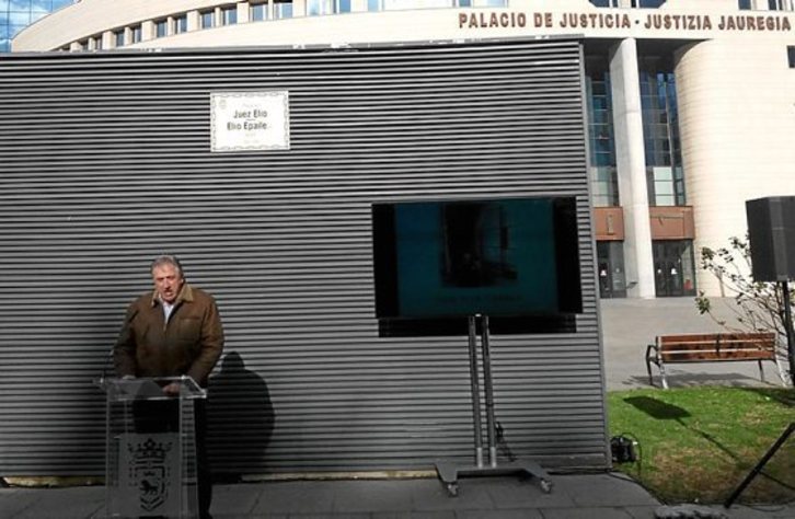Iruñea sigue dando pasos en favor de la memoria. Tras limpiar el callejero de nombres franquistas y devolver los restos de Emilio Mola y José Sanjurjo a sus familias, ayer se nombró la plaza en la que se halla la Audiencia Provincial dedicándola al juez Luis Elío.