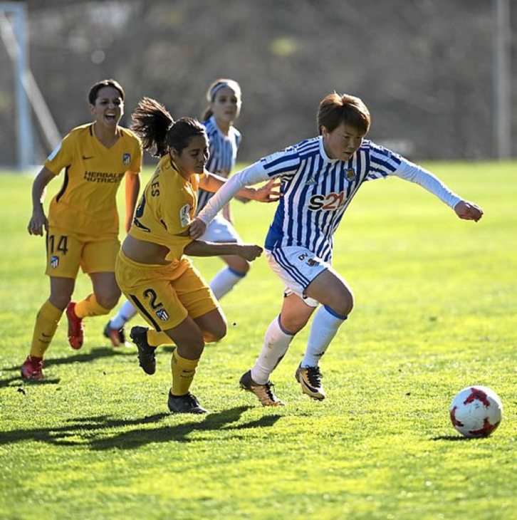 Las colchoneras entraron mejor al campo. El primer tiempo fue suyo e incluso el 0-1 con el que llegaban al descanso, gracias a un córner rematado por Kenti Robles, se antojaba escaso. La Real supo «agradecerlo». Salió más entonada tras el descanso y, en su segundo intento, Nahikari restablecía el empate en una gran acción.