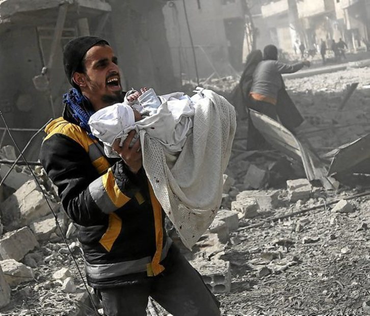 Al menos 71 civiles han muerto desde el domingo en bombardeos del régimen sirio en Ghuta Oriental, un bastión rebelde cerca de Damasco, donde la llegada de nuevas tropas leales al Gobierno augura una ofensiva terrestre inminente. Ayer fallecieron al menos 44 personas por disparos de cohetes y de artillería del régimen. En la localidad de Hamuria se extendía el pánico y la población buscaba refugio en los sótanos. A su vez, la periferia de Damasco comenzó a ser evacuada ante los disparos de artillería insurgente. GARA