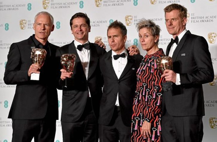 Mejor película, mejor actriz (Frances McDormand), mejor actor secundario (Sam Rockwell), mejor guion original y mejor película británica fueron las cinco categorías en las que se impuso “Tres anuncios en las afueras”, a la que siguió por número de premios “La forma del agua”, que se llevó tres, y “El instante más oscuro” y “Blade Runner 2049”, con dos cada uno.
