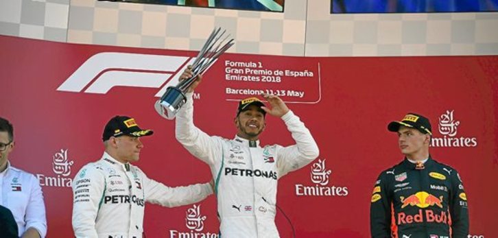 Tal día como ayer pero de 1950 en el histórico circuito inglés de Silverstone tenía lugar la primera carrera de Fórmula 1 de la historia, ganada por Nino Farina a los mandos de un Alfa Romeo, frente a una veintena más de monoplazas y más de cien espectadores. Fue el día en que comenzó todo. El estudioso periodista Jean-Paul Delsaux la describía así: «Los Alfa dictaban su ley; aparecían majestuosos en las curvas estrechas, frenaban sin dificultad alguna en cualquier curva, volvían a acelerar con una velocidad brutal en el arranque del pequeño rectilíneo final. En aquel circuito donde únicamente se usaban las marchas altas, Alfa se divertía». Han pasado 68 años, dicen que estos motores de ahora ya ni siquiera rugen como motores de F1, pero si alguien se divierte ahora ese es Mercedes, que ayer, en el Gran Premio en Montmeló situó en lo más alto del podio a Lewis Hamilton, segundo cajón tras Bakú, y que mandó de principio a fin en un circuito con menos emoción que el final de Eurovisión el día anterior. Segunda plaza para otro Mercedes, Bottas, tercera para Verstappen, que por fin no abandonó, y cuarta para un Vettel que sale como gran perdedor del día, en el que una mala parada le costó el podio al alemán y pérdida de puntos respecto al británico, 17 de brecha. «No es alarmante, es solo una carrera», matizó el piloto de Ferrari.