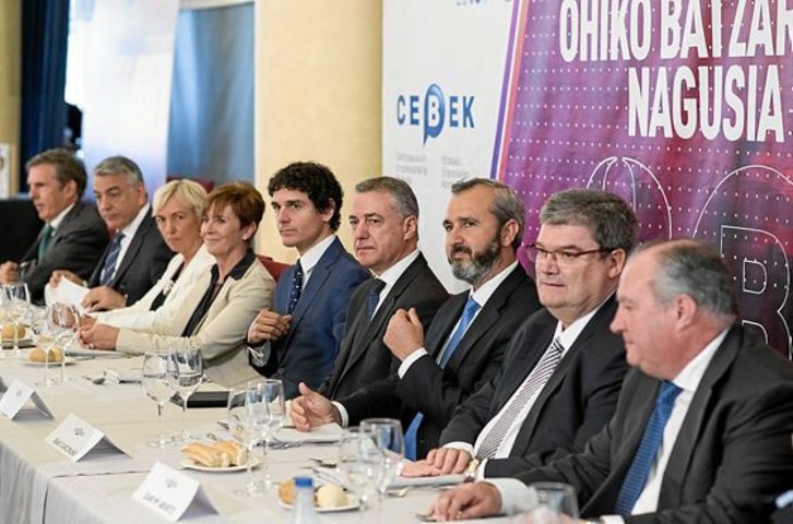 Paradójicamente, hizo este llamamiento durante su intervención en un acto organizado con motivo de la asamblea de Cebek, el mismo escenario en el que, el día anterior, el secretario general de esta patronal vizcaina, Francisco Javier Azpiazu, subrayó que durante la negociación del polémico documento no tuvieron «ningún tipo de duda» de que «los interlocutores» que tenían que estar «éramos los que estábamos sentados en la mesa correspondiente».