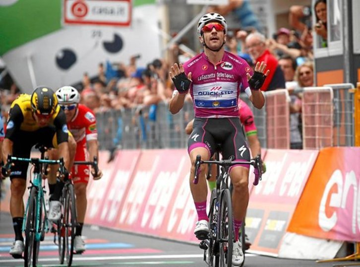Es el más rápido del pelotón del Giro en condiciones normales. Sam Bennett pasa mejor la montaña como demostró el día anterior en Imola, pero ayer Viviani superó sin problemas el puerto de Cuarta que presentaba la etapa en su tramo final y no dio opción a sus rivales. Cogió en el sprint la rueda de Sacha Modolo y lo superó para cruzar la línea de meta con una gran ventaja sobre sus rivales para dar al Quick Step su victoria 32 de la temporada.