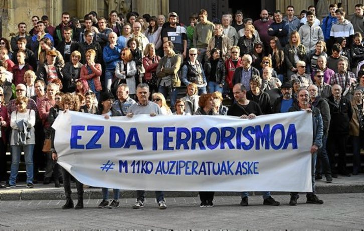 Errenteriako bizilagunek elkarretaratzea egin zuten atzo arratsaldean herriko plazan, bertako hiru gazteak aske uzteko eskatzeko. Astelehenean eta asteartean epaituko dituzte. Auzitegi Nazionalak aginduta, 2017ko martxoaren 11n Iruñean izan zen manifestazio batean gertatutako istiluetan atxilotu zituzten hirurak, Beasaingo beste lagun batekin batera.