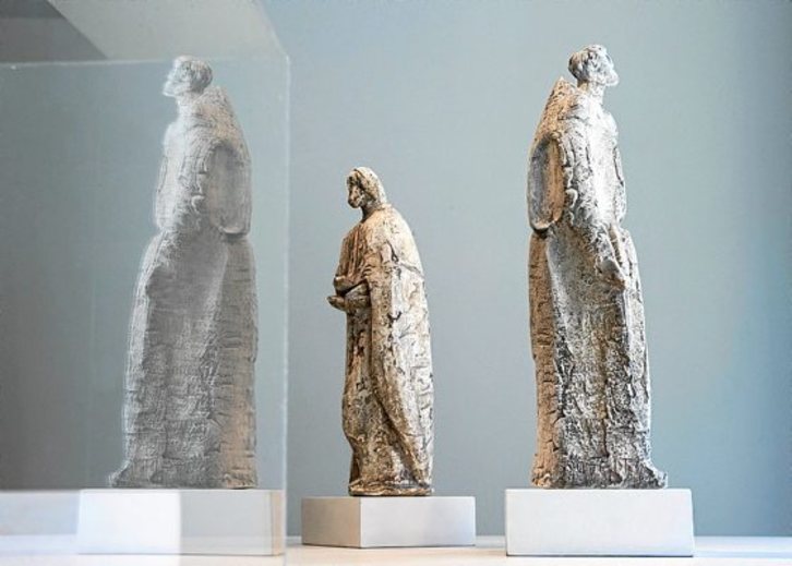 Bilboko Michel Mejuto galeriak atzo inauguratu zuen Jorge Oteizaren hamasei eskultura, brontzezko hamabi medailoi eta hamar obra abstraktu biltzen dituen erakusketa. Horien bidez, Orion jaiotako sortzaile handiaren berrogei urteko ibilbidea islatu nahi da, Michel Mejuto arte historialari eta galeriaren jabeak azaldu zuenez: «Zaharrena 1951. urtekoa da, eta Arantzazuko zikloaren zati da, orduan jaso baitzuen Arantzazuko enkargu eskultorikoa», zehaztu zuen erakusketaren inaugurazioaren ostean. Ibilbideak Klarion Laborategiko hainbat piezarekin jarraitzen du, 70eko hamarkadan eskultura berrartu zuenean egindakoak, eta badaude Oteizaren ibilbideko hainbat obra adierazgarri ere, tartean hormigoizko pietate bat edo Arantzazuko frisoko apostolu baten burua. «Hain justu, Nestor Basterretxearen ‘Ama-Lur’ filmerako erabili zutena da. Uste dut erakusketarekin Oteizaren interes teknikoen gaineko ibilbide bikain bat osatu dugula eta badu balio erantsi bat ere: obra guztiak bilduma pribatuen zati direnez, gehienak ez dira jendaurrean sekula erakutsi», nabarmendu zuen Mejutok.